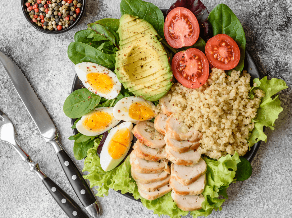 - Čtvrtina talíře: Kvalitní zdroj bílkovin (kuřecí maso, ryba, tofu, luštěniny), které vás zasytí.